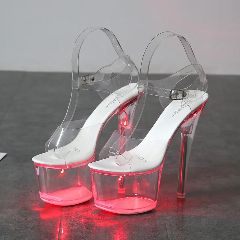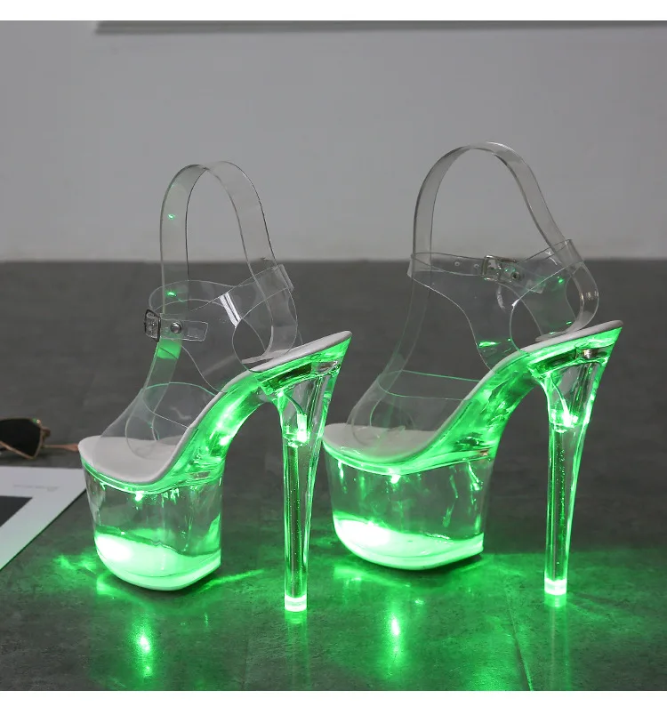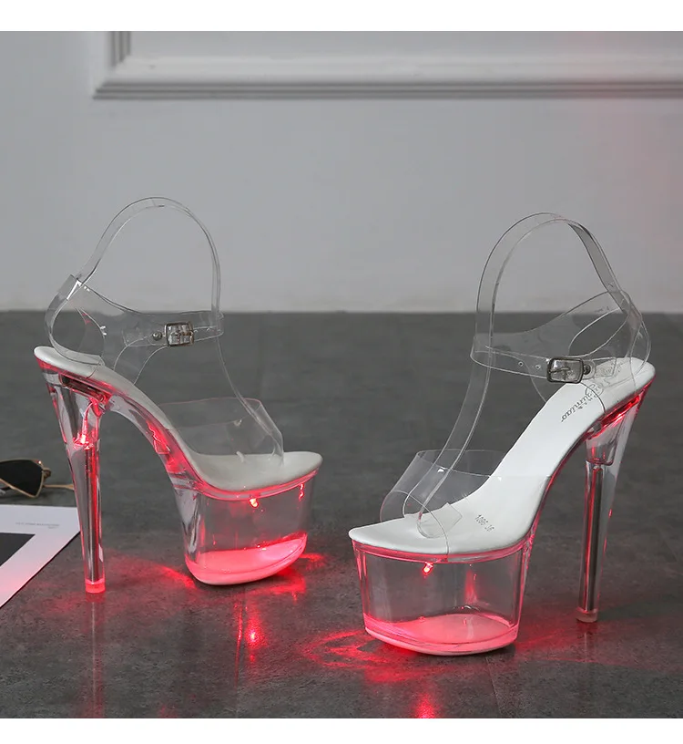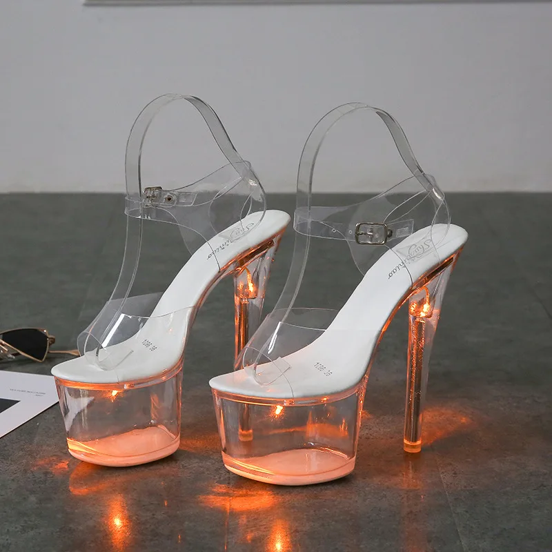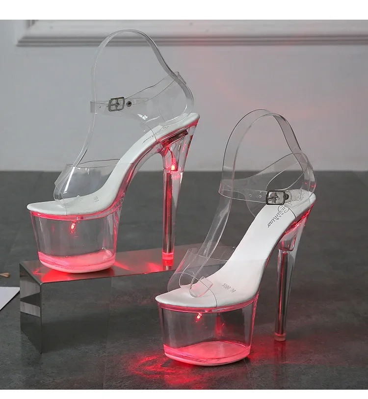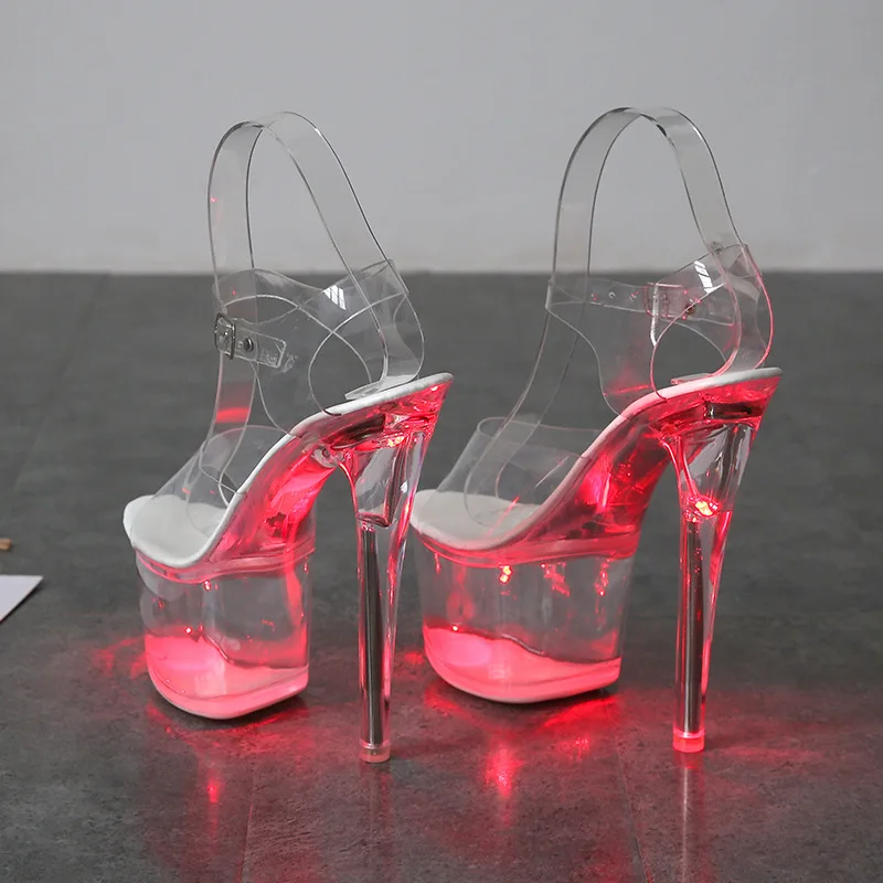 17CM Mclubgirl 34-43 New Heels Nightclub High Heels Shoes Luminous Sandals Shoes Catwalk Pole Dancing Shoes Crystal Bottom LFD