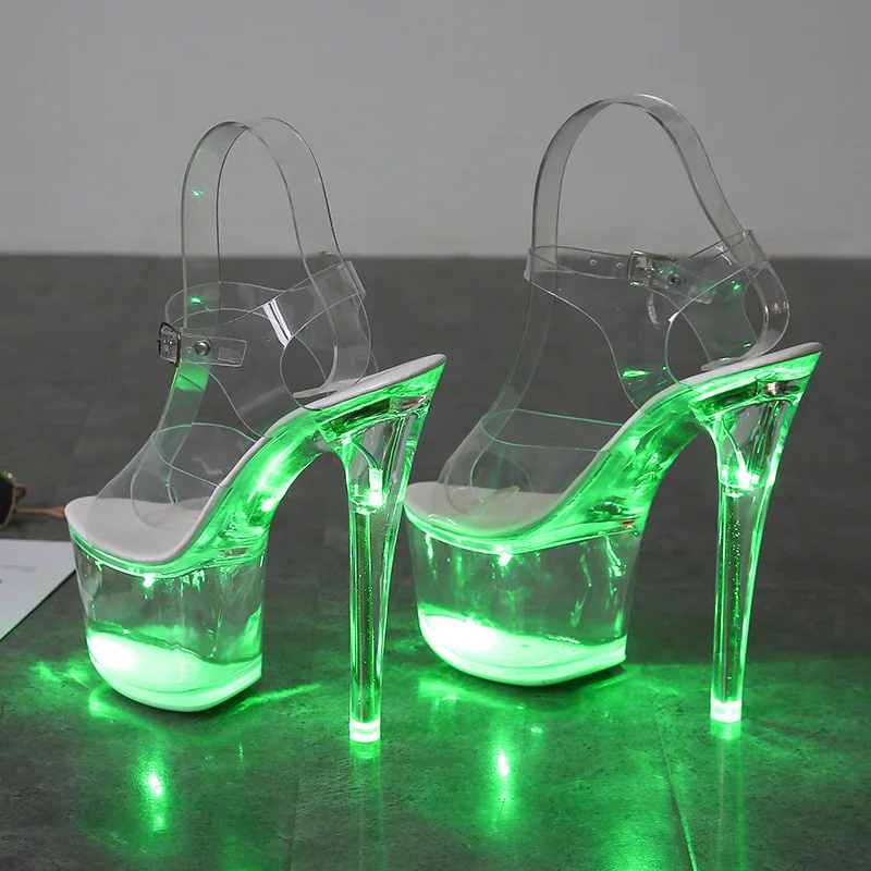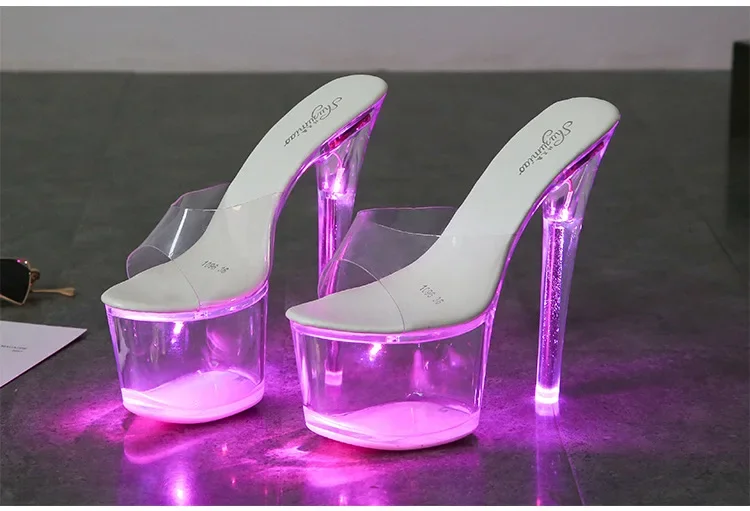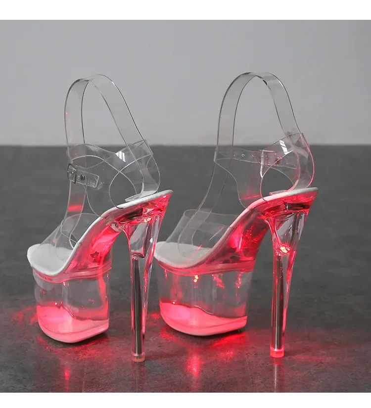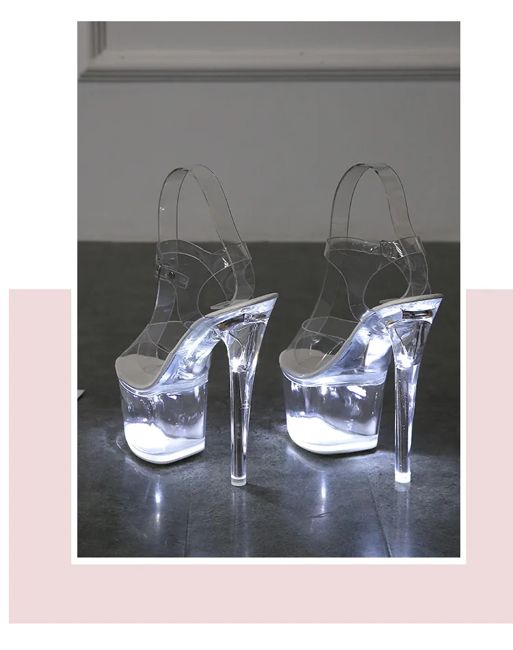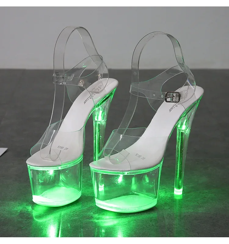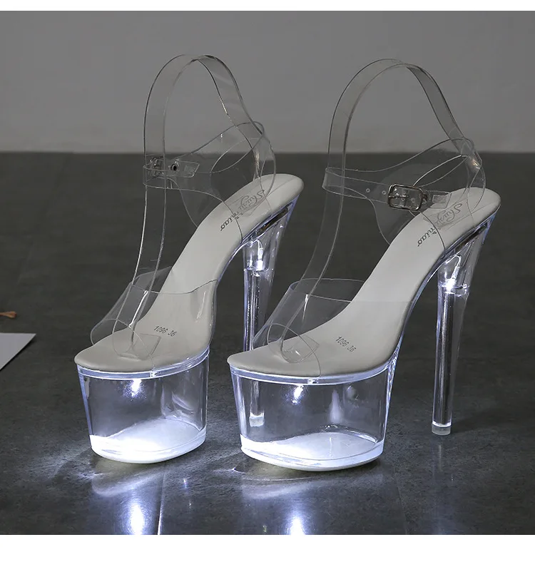 17CM Mclubgirl 34-43 New Heels Nightclub High Heels Shoes Luminous Sandals Shoes Catwalk Pole Dancing Shoes Crystal Bottom LFD