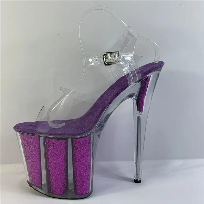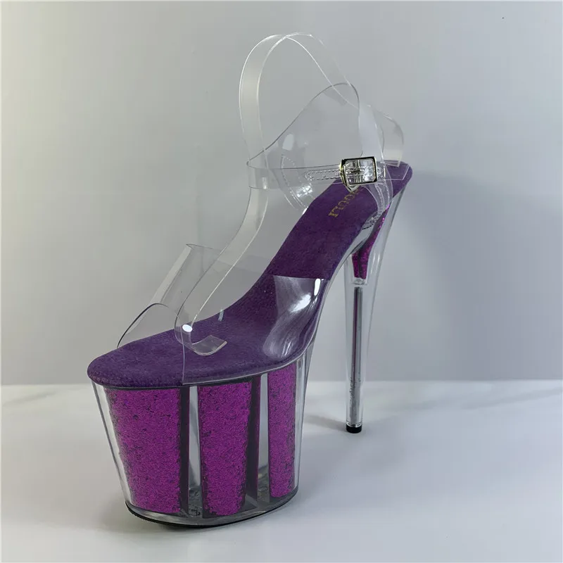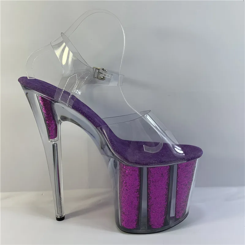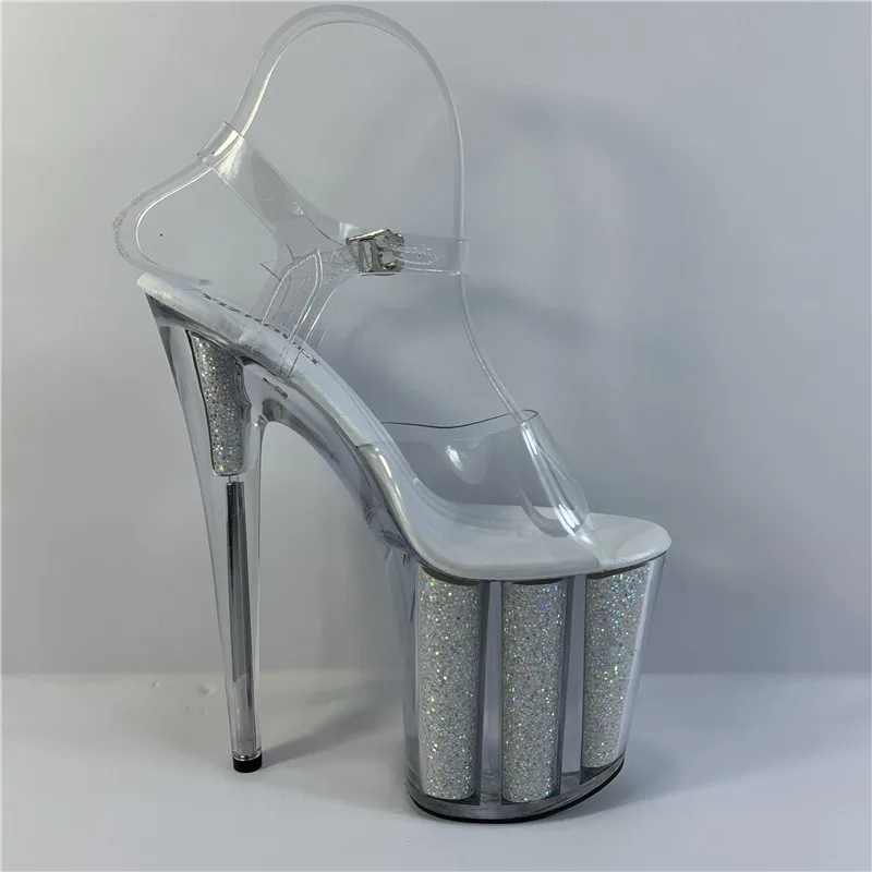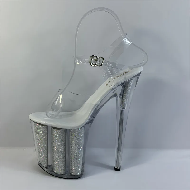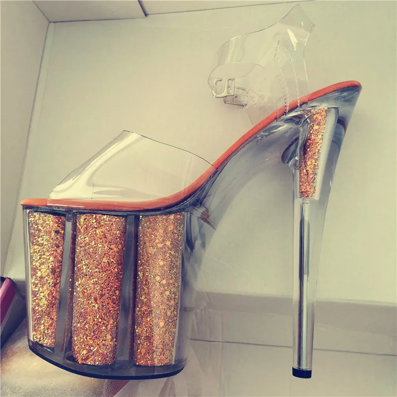 20 cm sexy transparent platform sequined decoration, 8 inch stiletto banquet nightclub shoes/pole dancing model sandals