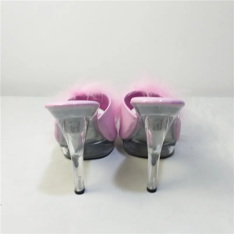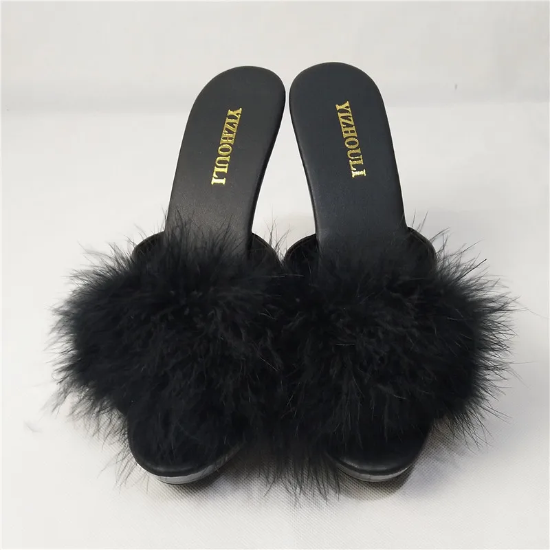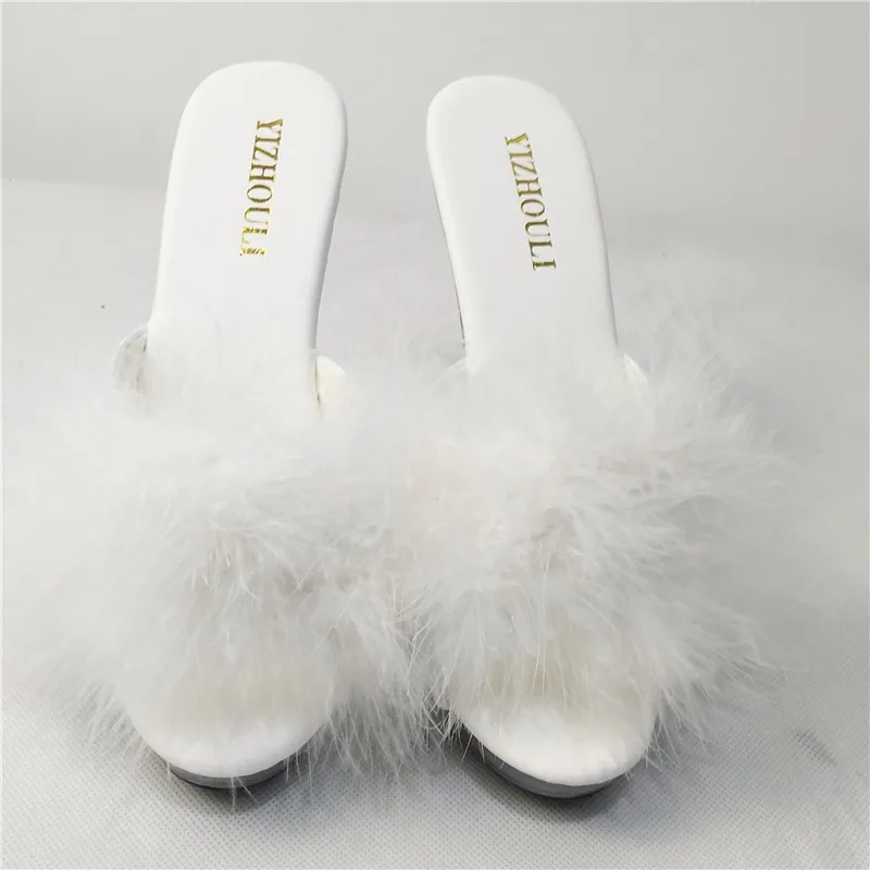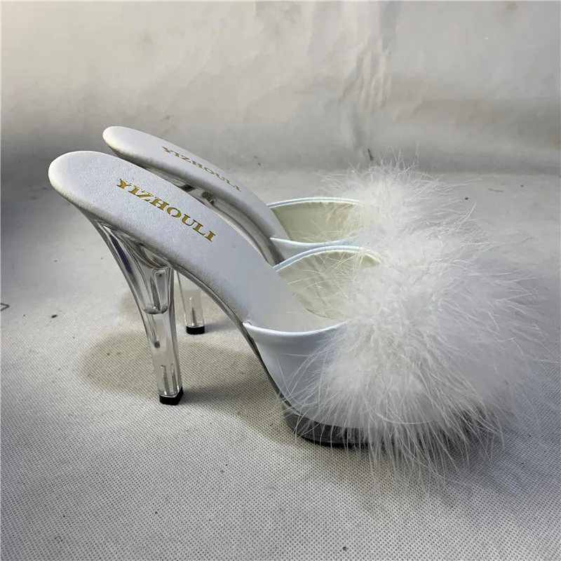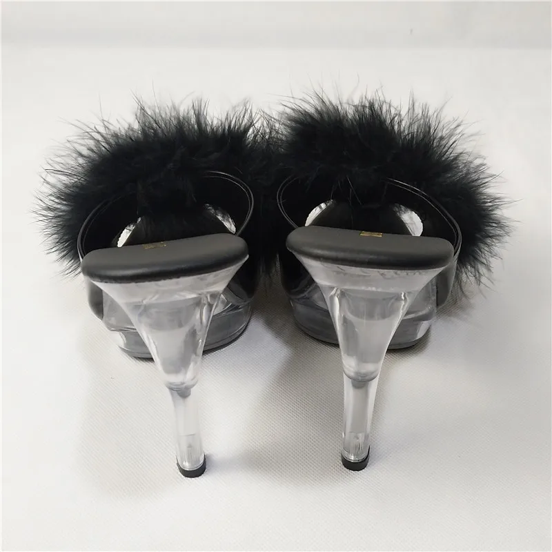 High Heels 13CM Stripper Shoes Plump Feathered Crystal Shoes Hot Sexy Platform Women's Sandals