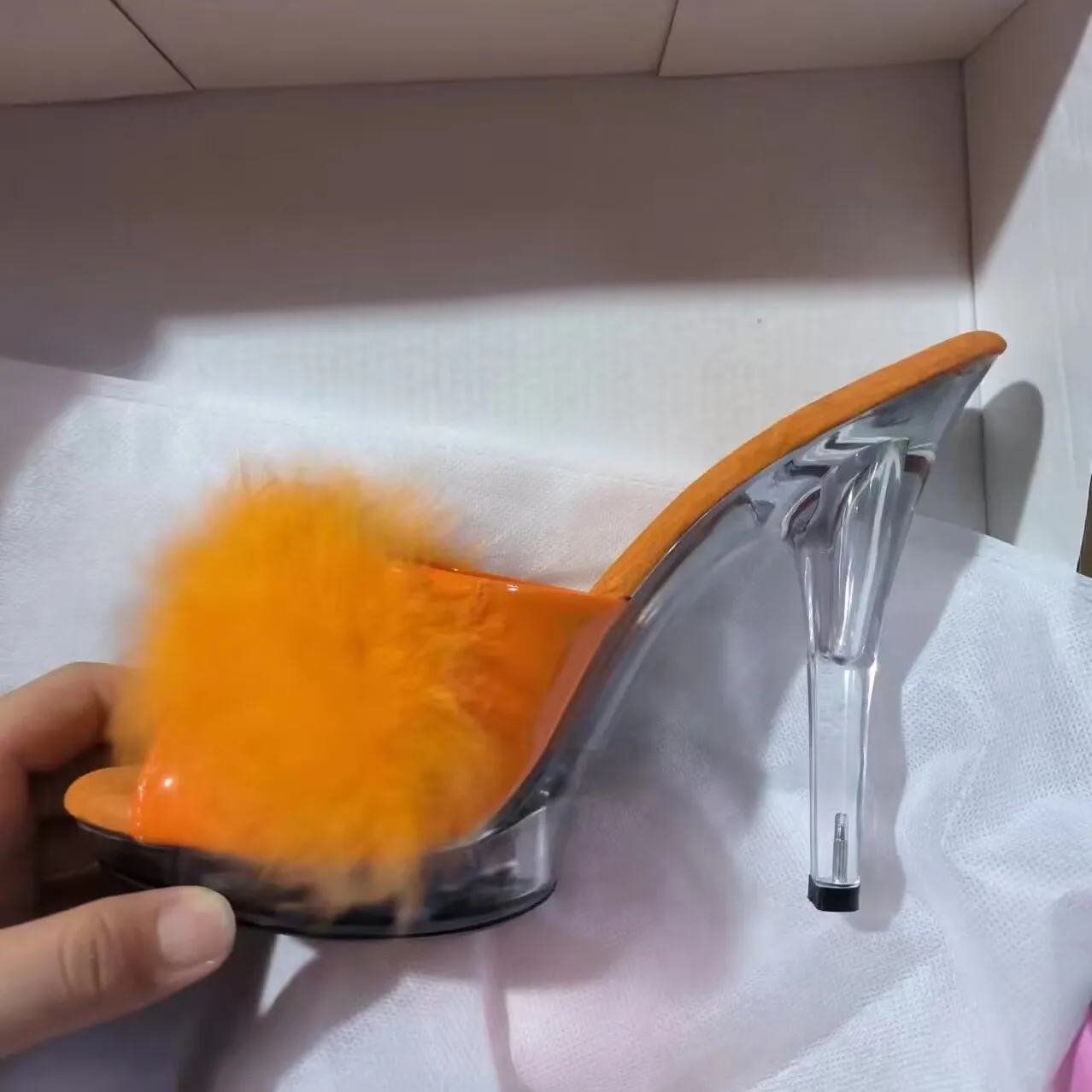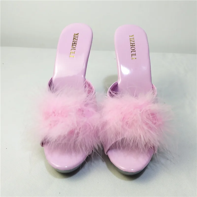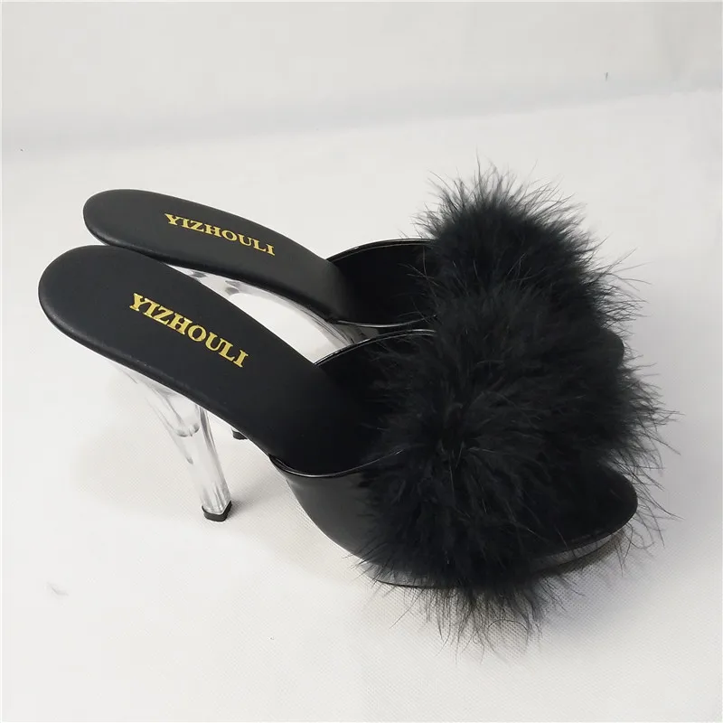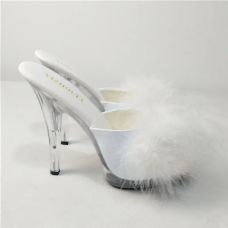 High Heels 13CM Stripper Shoes Plump Feathered Crystal Shoes Hot Sexy Platform Women's Sandals