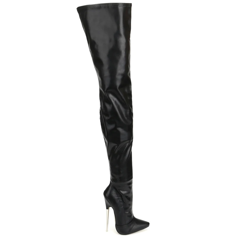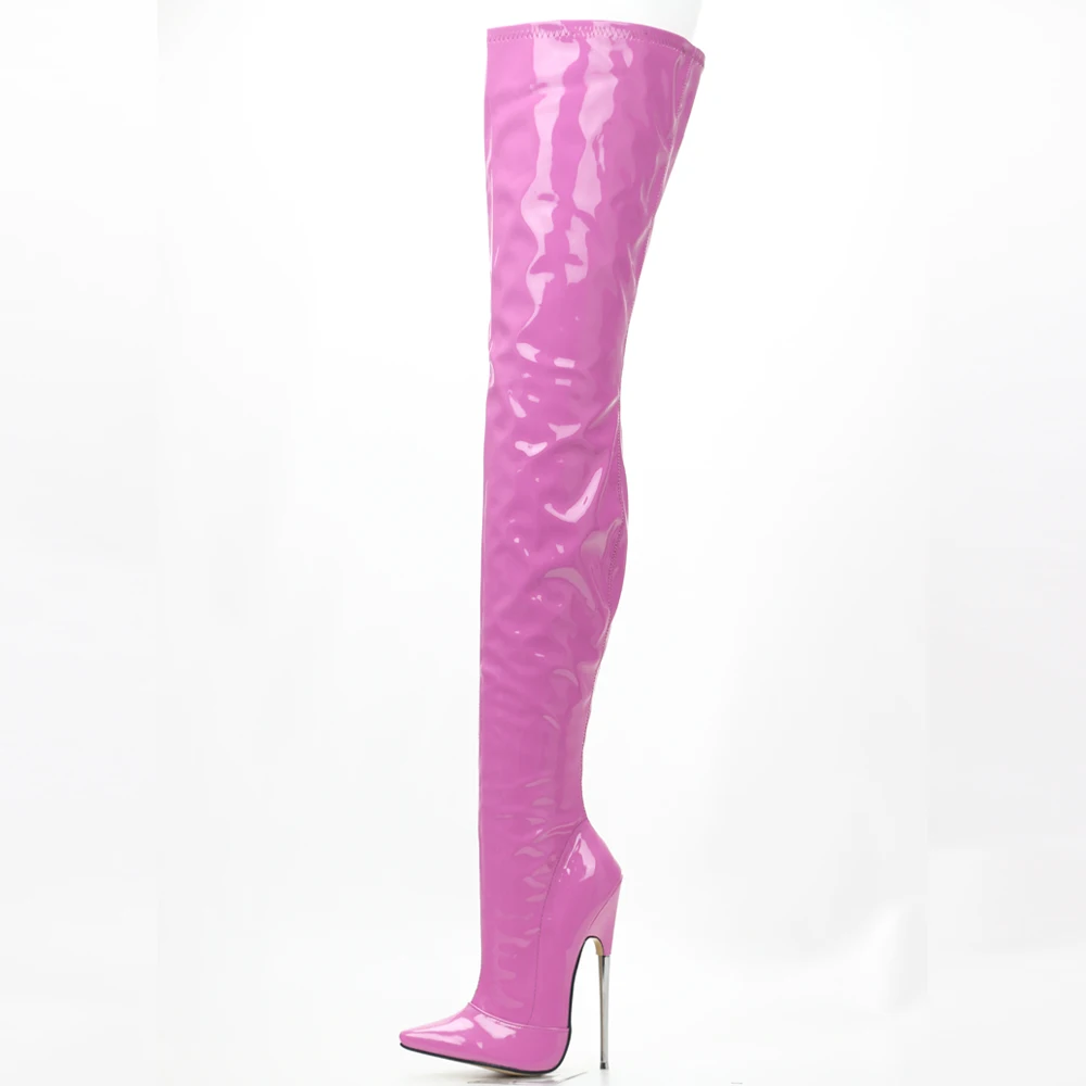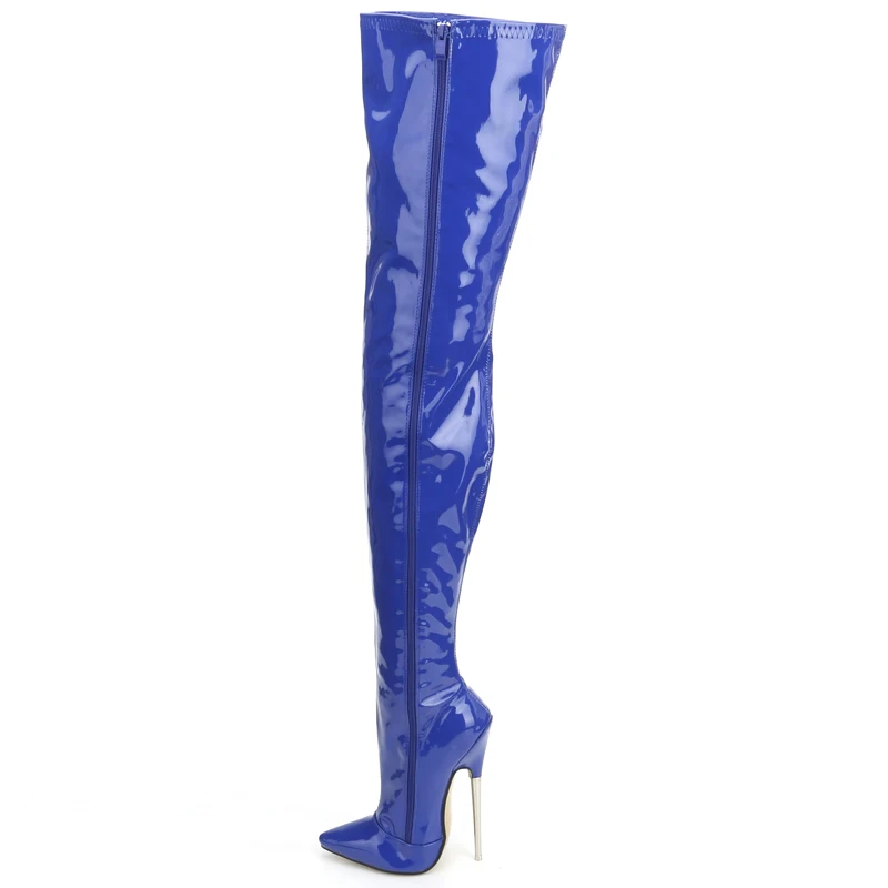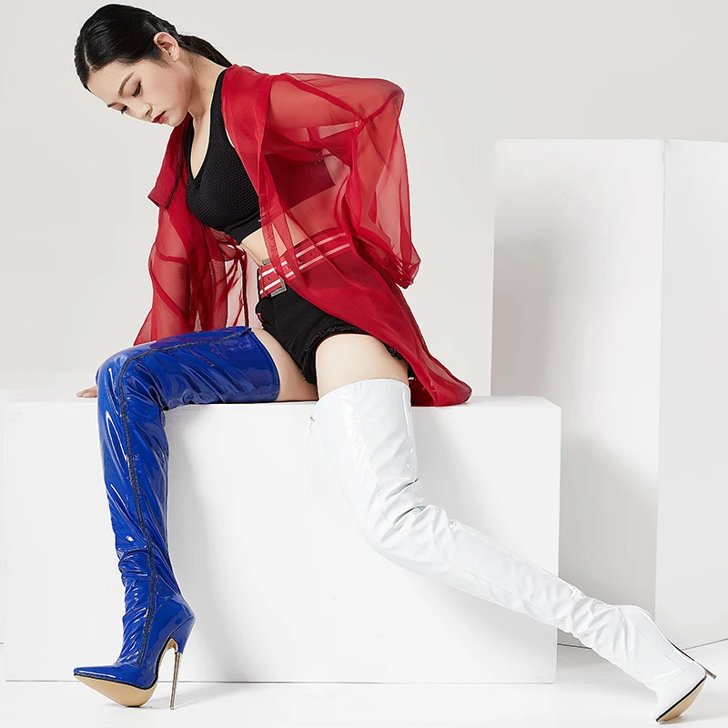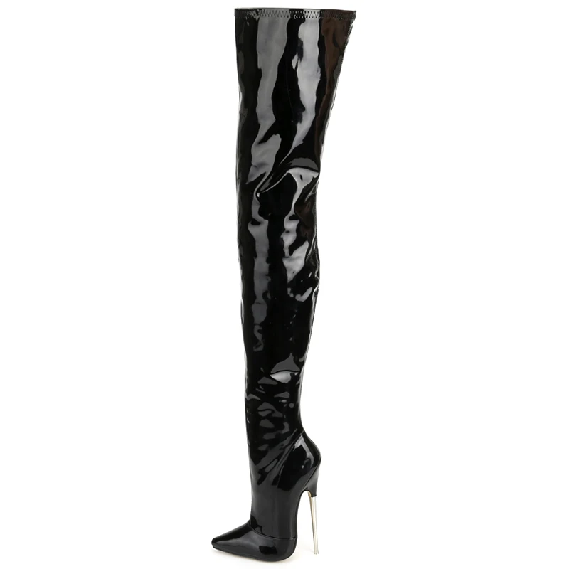 jialuowei Crotch Boots with Stiletto Heels Women Winter Boots Patent Leather Black Stretch Thigh High Boots Plus Size