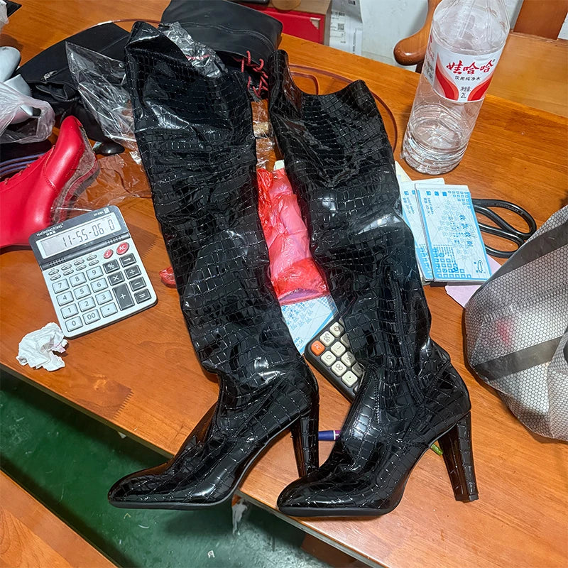 Sexy Women Over The Knee Boots High Heels Party Shoes Winter Luxury Long Boots New Dress Pumps Motorcycle Boots Mujer Snow Botas
