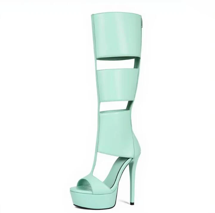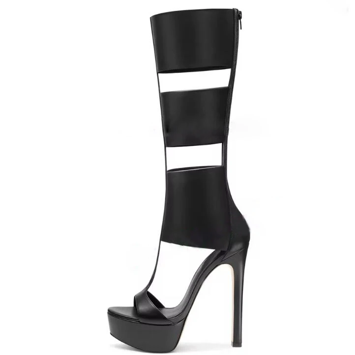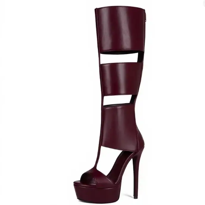 Super Platform Knee Sandal Boots Women Caged Thick T-Strap Gladiator Open Toe Back Zipper Summer Cutout Botas Lady Shoes